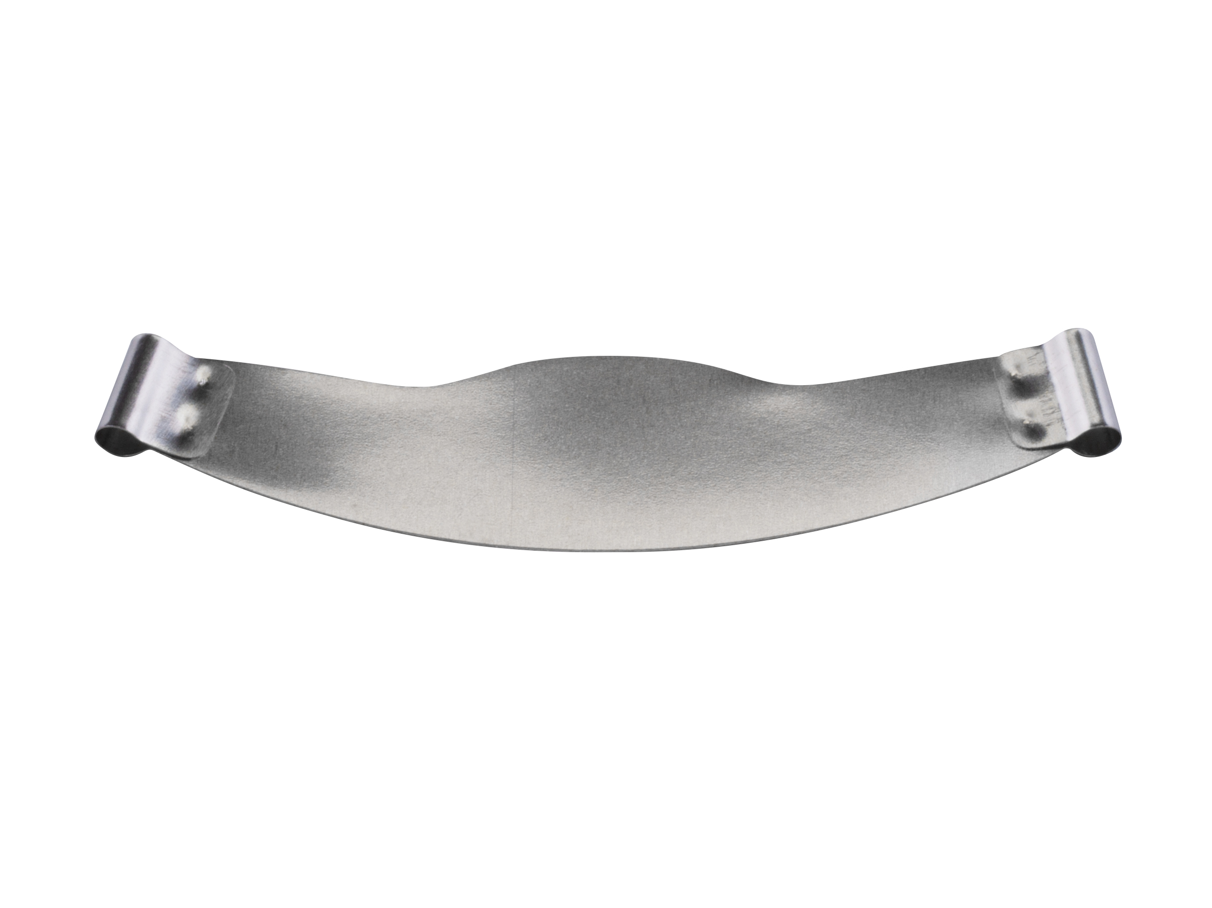 Большие матрицы 1.303 замковые плоские изготавливают из устойчивой к коррозии стали толщиной 35 и 50 мкм. Края детали загнуты и образуют трубку цилиндрической формы, куда вставляют стержни замочных фиксаторов №1.003 и 1.005, а также колец №1.033.