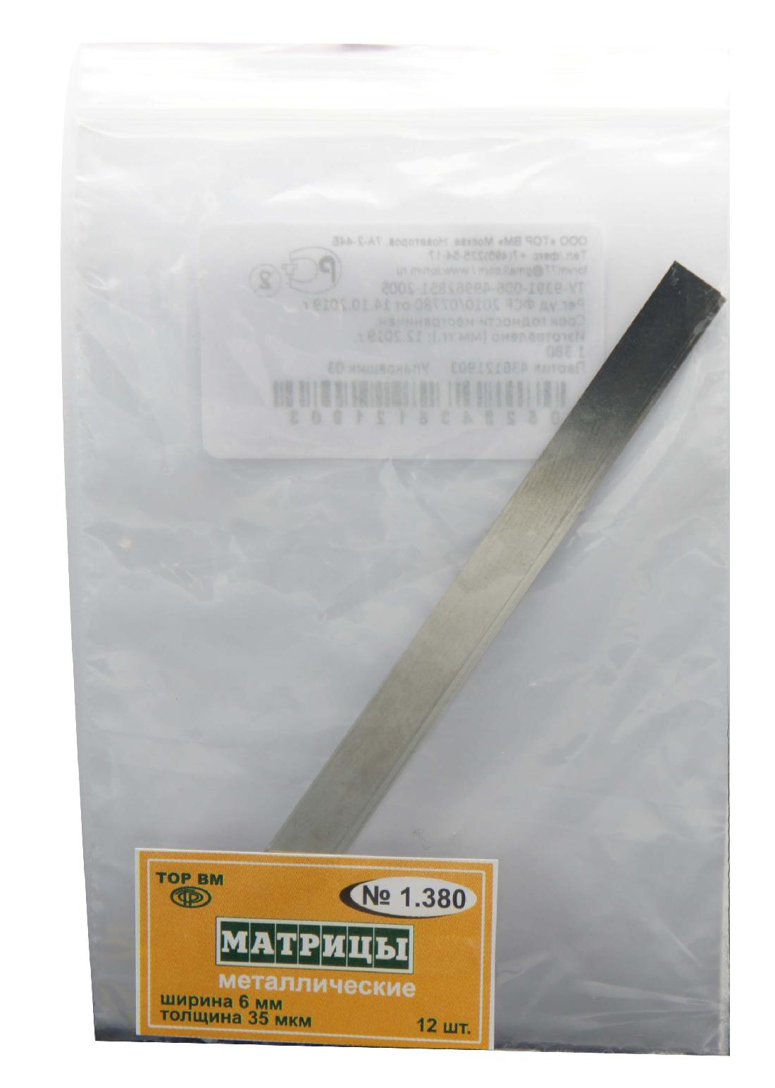 Применяются при реставрационных работах на разрушенной коронковой части зуба. Имеют оптимальную длину, позволяющую осуществить обхват зуба.ширина 6 мм длина 100 мм Выпускаются толщиной 50 и 35 мкм.