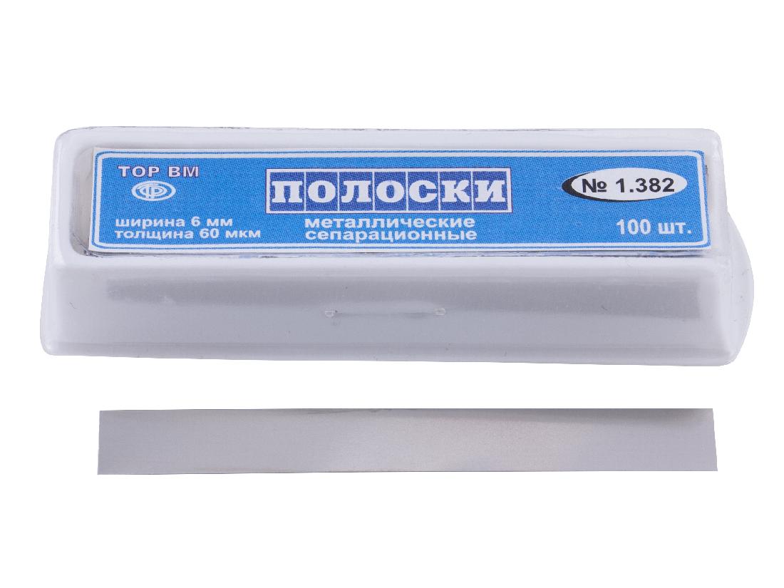 Сепарационные полоски применяют в пломбировочном процессе с целью ограничения апроксимальной полости в пространстве между зубами. Производство полос осуществляют методом холодного штампования ленты из прошедшей термообработку стали.Изготавливаются из твердой стали толщиной 60 мкм.