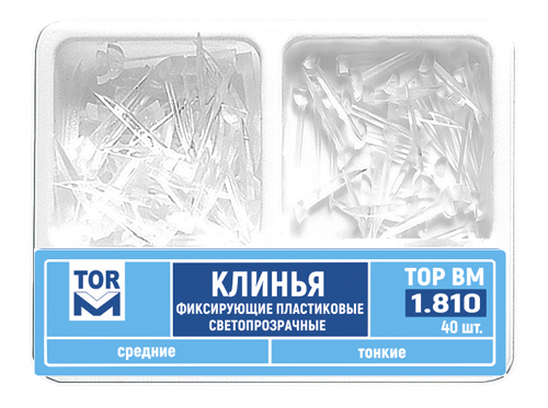 Клинья предназначены для создания промежутка между зубами или фиксации матрицы. Особенностью данной модели является светопрозрачный материал, используемый для ее создания. Это оптимизирует гибкость и прочность клиньев, позволяя им многократно изменять угол сгибания. Нижняя часть клиньев имеет рассеивающую способность.