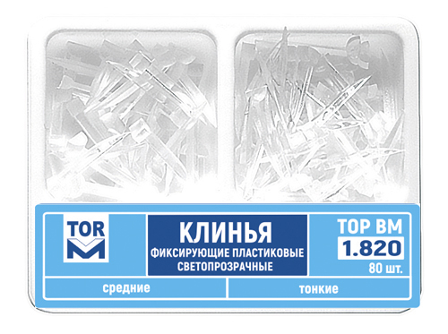Клинья предназначены для создания промежутка между зубами или фиксации матрицы. Особенностью данной модели является светопрозрачный материал, используемый для ее создания. Это оптимизирует гибкость и прочность клиньев, позволяя им многократно изменять угол сгибания. Нижняя часть клиньев имеет рассеивающую способность.