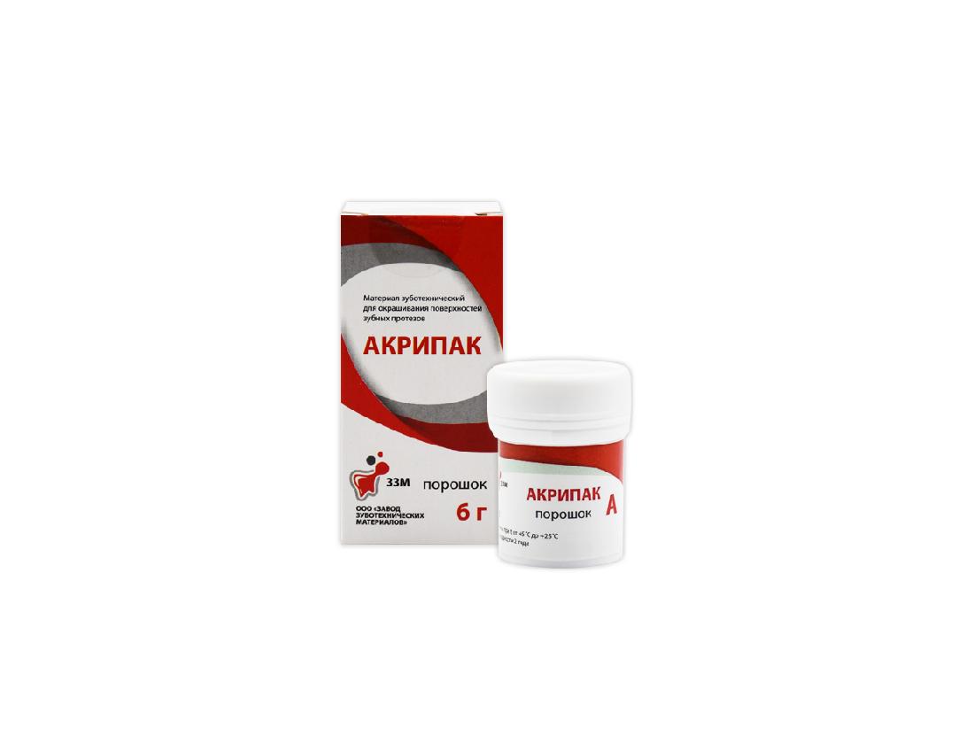 Материал «Акрипак» выпускается в виде двух компонентов - порошка, содержащего полиэфиры метакриловой кислоты, наполнители и пигменты, и жидкости, содержащей диметакриловый эфир триэтиленгликоля, после смешивания которых образуется паста, твердеющая при нагревании до температуры 220-2З0 0С.