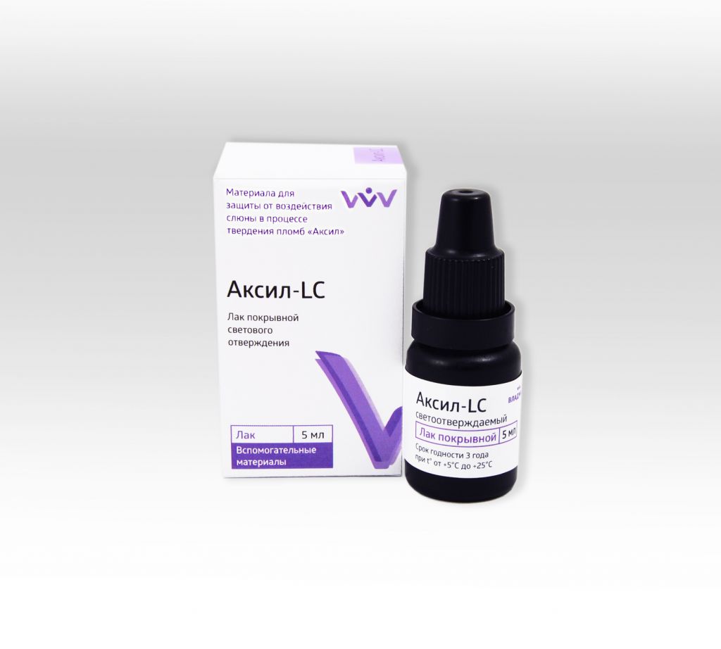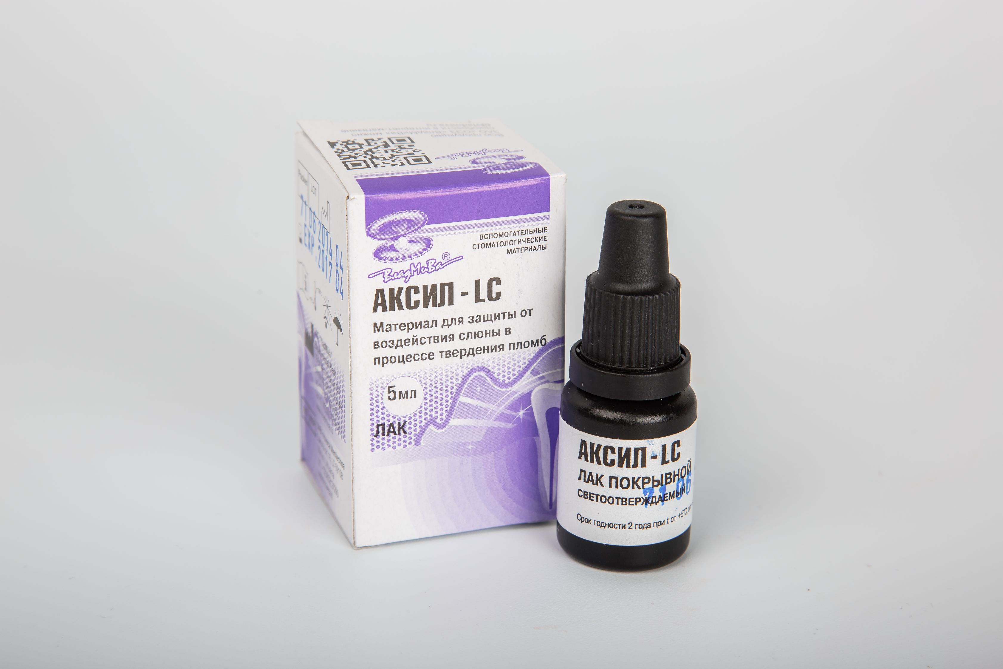 Применяется для защиты полимеров и цементов на стеклоиономерной основе от действия влаги, так же Аксил позволяет устранять мелкие дефекты и пористость. Лак содержит метакрилатные смолы, растворители, стабилизаторы. Отличается высокой адгезией к пломбировочным материалам. Отверждение происходит под действием света. Образует тонкую плёнку на поверхности материалов для пломбирования и защищает их в течение 24 часов.