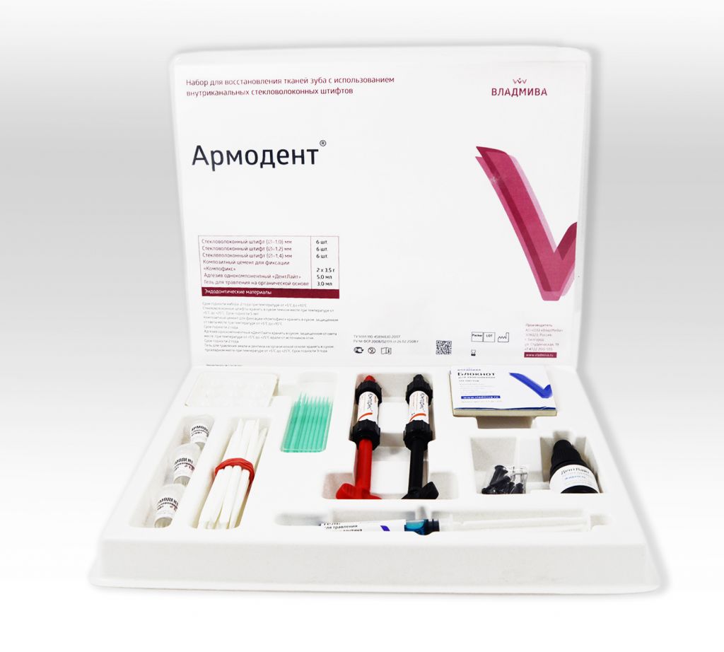 Комплект прозрачных стекловолоконных штифтов, дополненный цементом «Компофикс» и адгезивом «ДентЛайт». Материалы используются для реставрации и усиления коронки зуба. Штифты изготавливается из стеклянных волокон, погруженных в эпоксидную смолу (БИС-ГМА). Обладают эластичностью, высокой прочностью и светопроницаемостью.