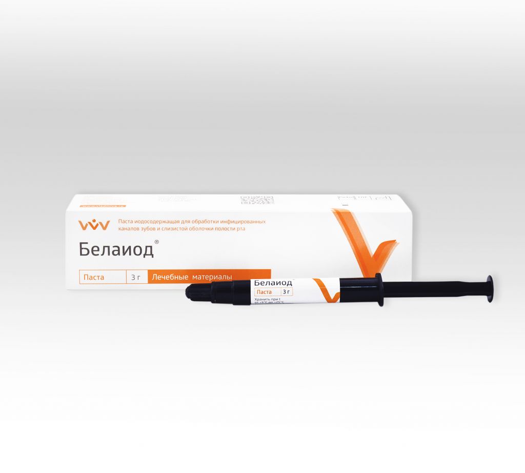 Белайод - паста, содержащая йод, применяется как антисептик при различных инфекционных поражениях ротовой полости (пародонтит, стоматит, гингивит) или пораженного канала зубного корня. Белайод - препарат пролонгированного действия. Благодаря содержанию глицерина и лецитина влияние йода на ткани смягчается.