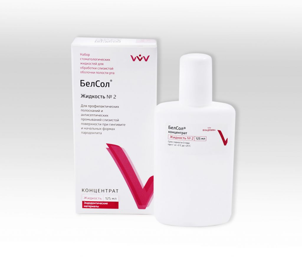 Стоматологическая жидкость, на основе хлоргексидина биглюконата, предназначена для промываний полости рта при начальных стадиях пародонтита. Используется для обработки полостей перед пломбированием. Обладает антисептическим и противобляшковым действием.Жидкость №2 — содержит в своем составе антисептик — хлоргексидина биглюконат (2%), оказывает микробоцидное действие, снижает образование зубного налета, эффективна в противобляшковом действии.