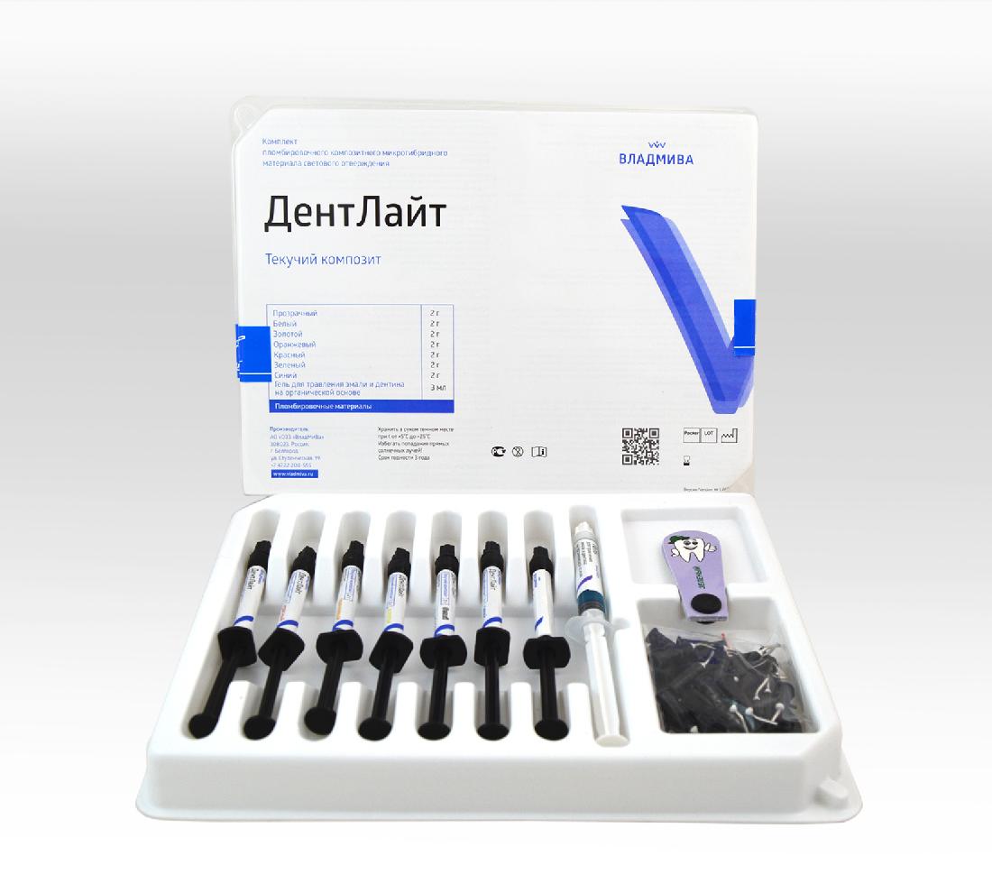 Моногибридный композитный материал Дентлайт полимеризующийся под действием видимого света. Обладает превосходными рабочими характеристиками, позволяющими с лёгкостью выполнять моделирование. Дентлайт - это сочетание высоких эстетических показателей и прочностных характеристик. Имеет широкую цветовую гамму. Цветостабилен, рентгеноконтрастен. Набор – 7 цветов.