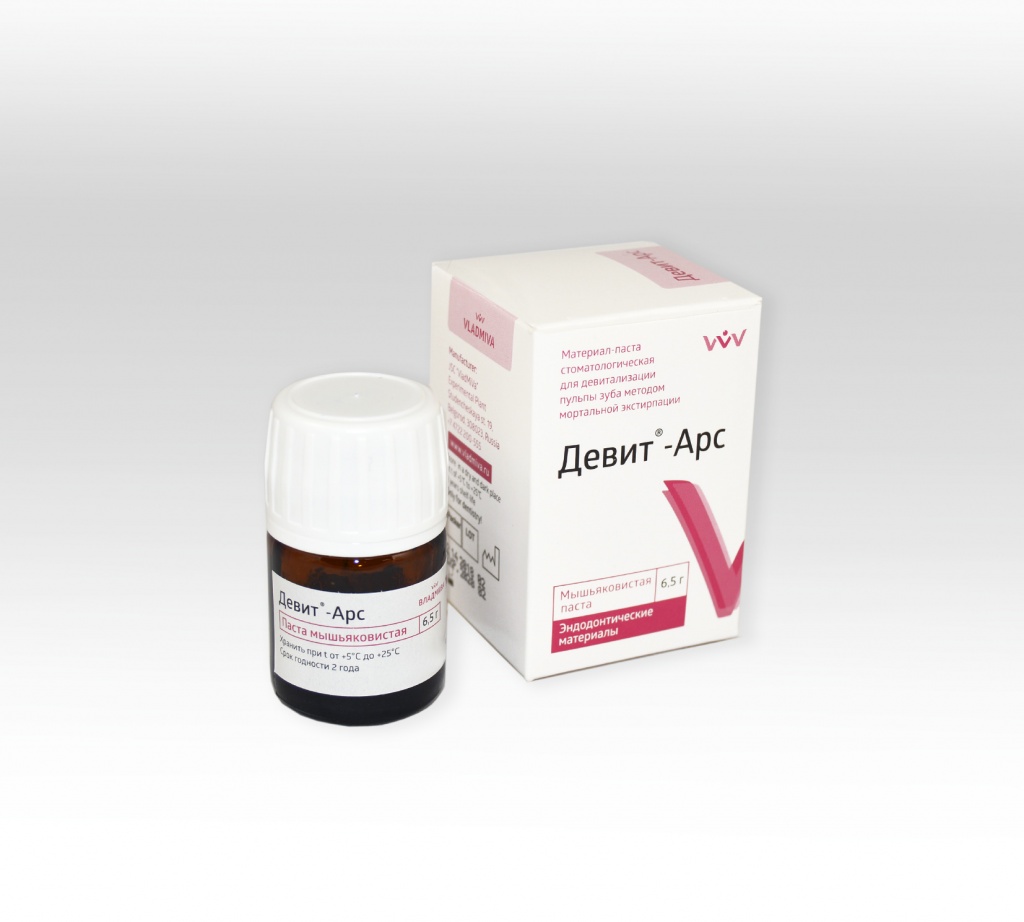 Препарат в виде пасты для быстрой и безболезненной девитализации пульпы. В составе присутствует 30% мышьяк, который обеспечивает умертвение тканей, анестетик для обезболивания, антисептик эвгенол, волокнистый наполнитель и пастообразователь, обеспечивающие пластичность и дискретность вещества. Процесс длится 24-48 часов, нельзя оставлять препарат в полости больше, чем на 72 часа. Готов к использованию .Объем препарата 6,5г.