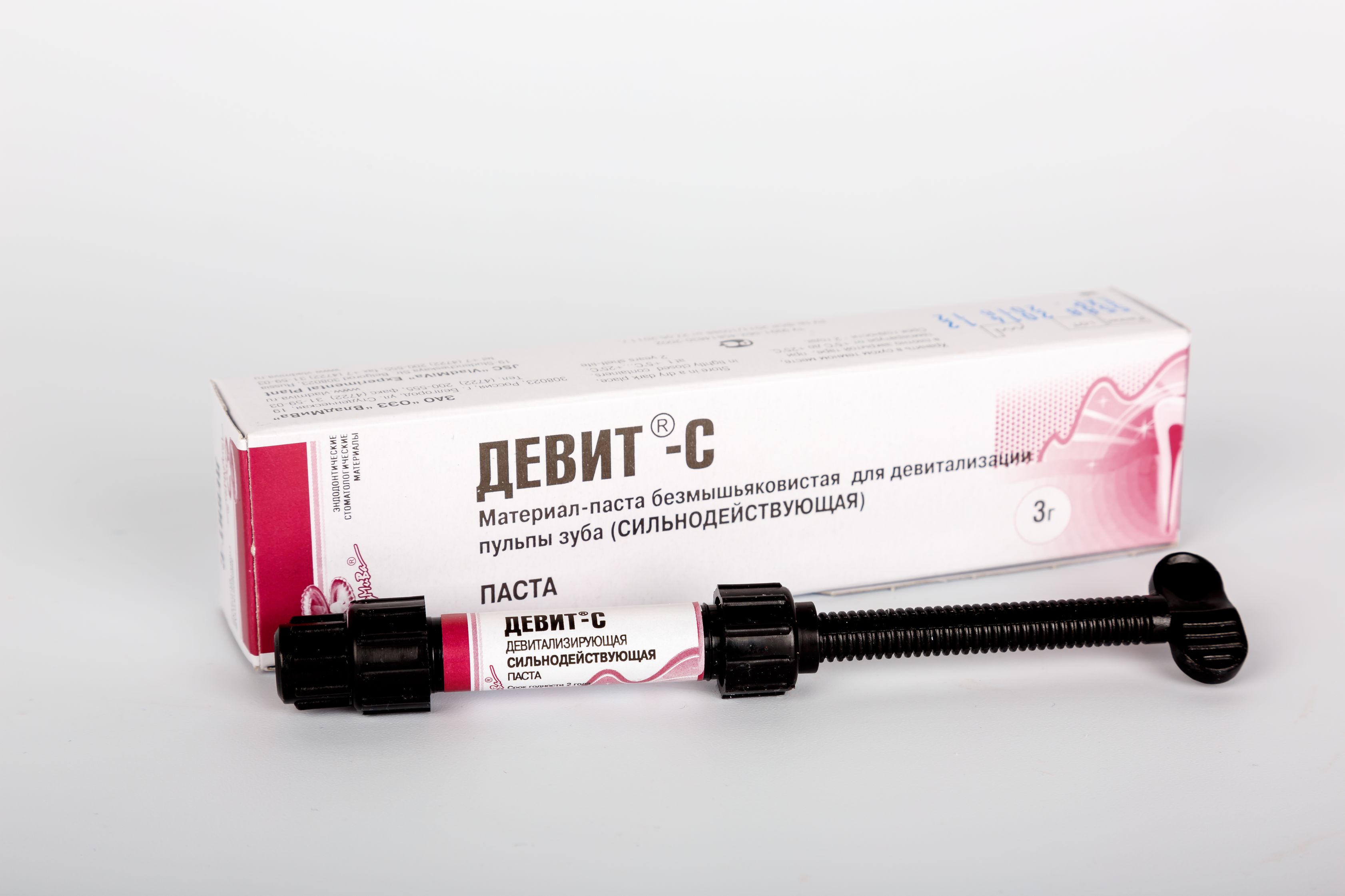Препарат применяется для депульпации при лечении пульпита, остаточного корневого пульпита, как дополнительное вещество для девитализации после мышьяковых средств. В состав входит антисептик параформальдегид, анестетик лидокаина гидрохлорид, пастоформирователь, наполнитель, не содержит мышьяк. Обеспечивает длительную депульпацию почти без раздражения и боли. Процесс длится 3-5 дней, иногда - 7 дней.