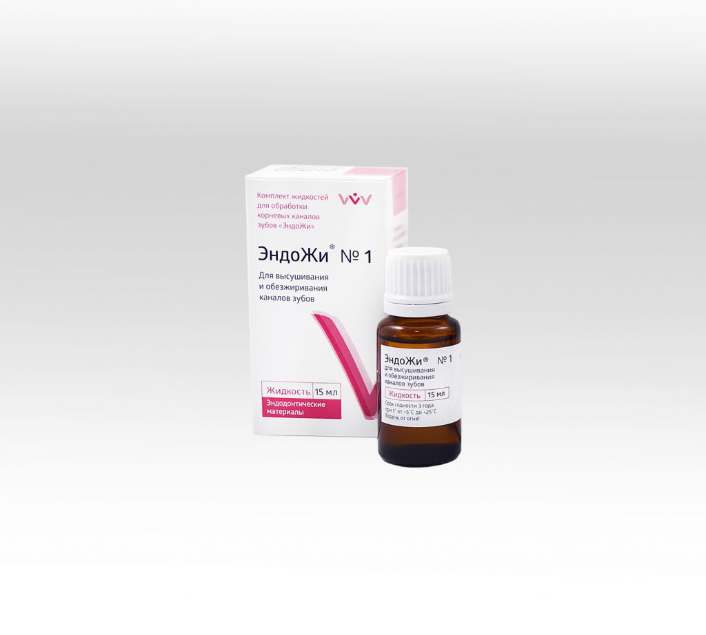 Эндожи №1» - легкоиспаряющаяся жидкость, не содержащая эфир диэтиловый и этанол, выполняет осушение и обезжиривание корневых каналов. Необходимый результат достигается за 1 минуту действия препарата. Эндожи №1 не нуждается в использовании воздушной струи для осуществления сушки.