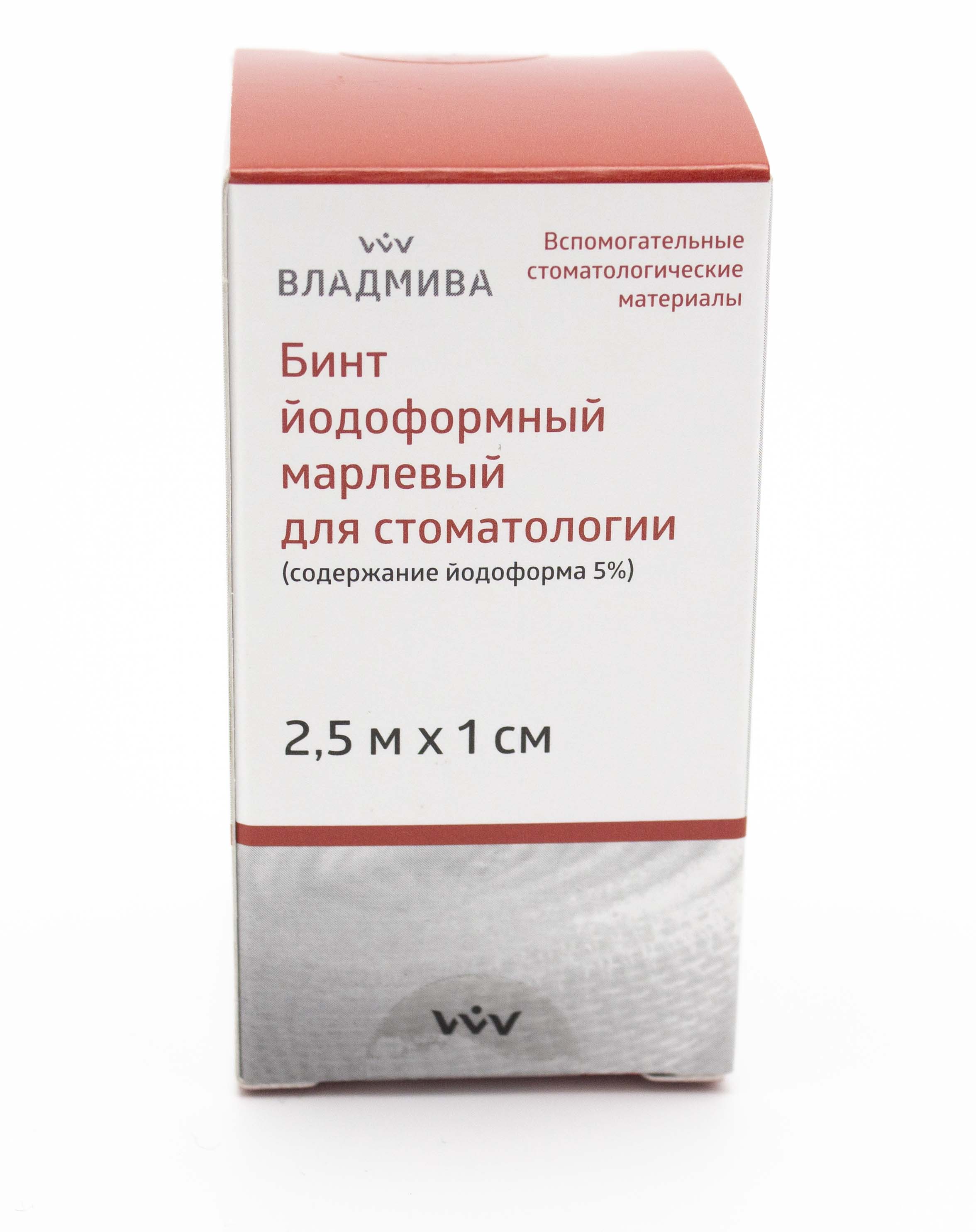 Бинт, применяемый при лечении лунок после удаления зуба и для дезинфицирования верхнечелюстных синусов. Представляет собой хлопковый тампонадный бинт. На 100 г бинта приходится 5г йодоформа. Обладает хорошей адсорбцией, легким антисептическим действием. Вступая в контакт с раневой поверхностью, йодоформ начинает разлагаться с выделением свободного йода, обеспечивая бактерицидный эффект.