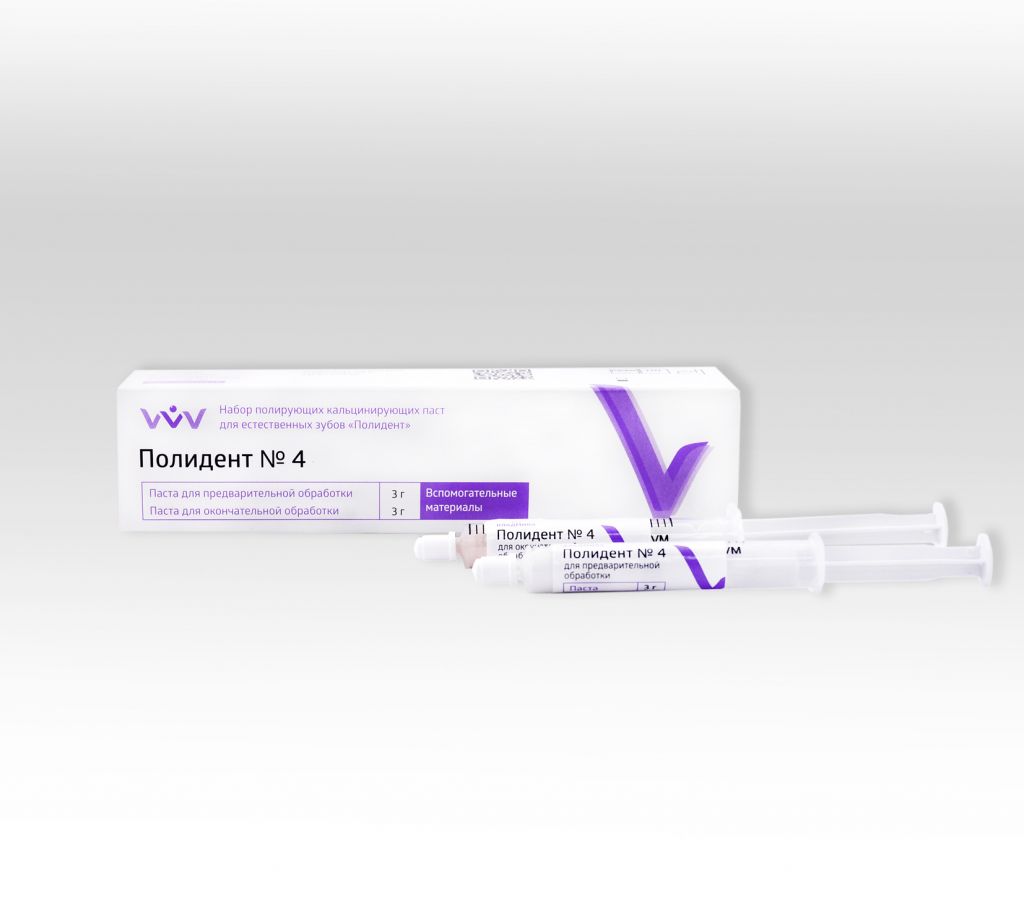 Полидент используется для обработки пломб без их повреждения. Может применяться для работы с стеклоиономерными, композитными и амальгамными пломбами. Паста применяется с помощью пламевидных головок и позволяет провести полировку пломб без потери их прочности и однородности в течение одной минуты.