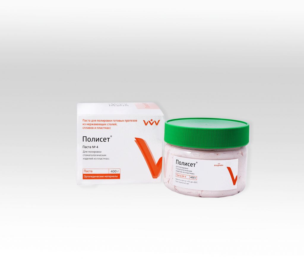 В состав пасты входит абразивный материал, ПАВ, воск, стеарин, парафин. Имеет оптимальные рабочие характеристики. Полисет №4» содержит водорастворимый пастообразователь.
