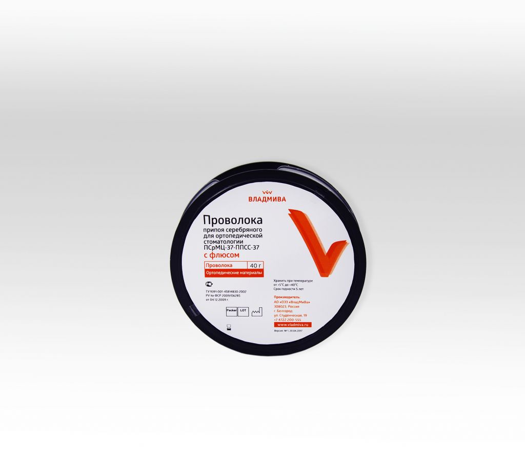 ПСрМЦ – это серебряный сплав (серебро – 37%). Проволочный припой используют для пайки стальных и кобальт-хромовых зубопротезных элементов. Место спайки характеризуется высокой прочностью на разрыв. ПСрМЦ выпускают в мотках по 40 г. В набор входит порошок - флюс (30г), который защищает спаиваемую поверхность от внешнего воздействия.