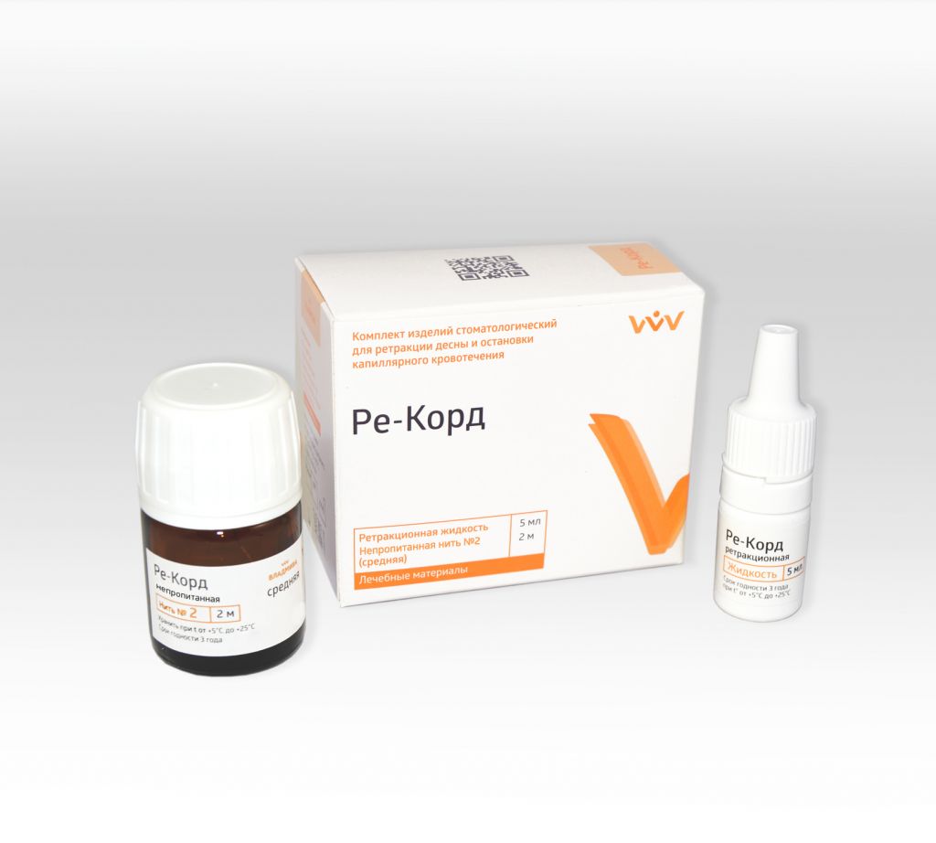 Ретракционный набор состоит из необработанной нити №2 и гемостатической жидкости. Предназначен для ретракции десны. Ретракция длится примерно 30 минут. Жидкость обладает кровоостанавливающими свойствами. Активное вещество - хлористый алюминий. Фасовка - нить 2 м и жидкость 5 мл. Готов к применению.