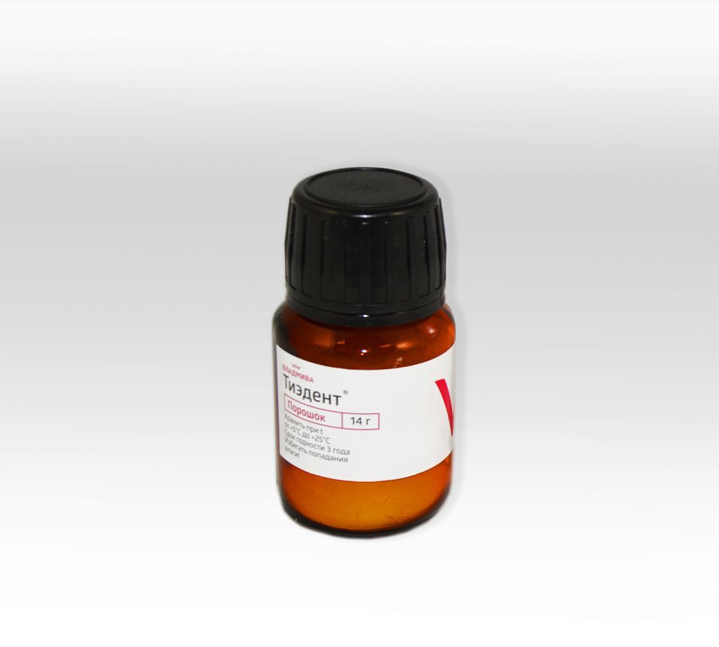 Тиэдент в порошке используют для пломбирования зубных каналов при периодонтитах, в особенности на этапе эскалация заболевания. Тиэдент хорошо переносится тканями полости рта, имеет антисептическое и бактерицидное воздействие. Порошок при перемешивании с жидкостью образует пасту, которая остается пластичной до 7 часов, что предоставляет возможность не спеша провести требуемые манипуляции. Материал является рентгеноконтрастным.