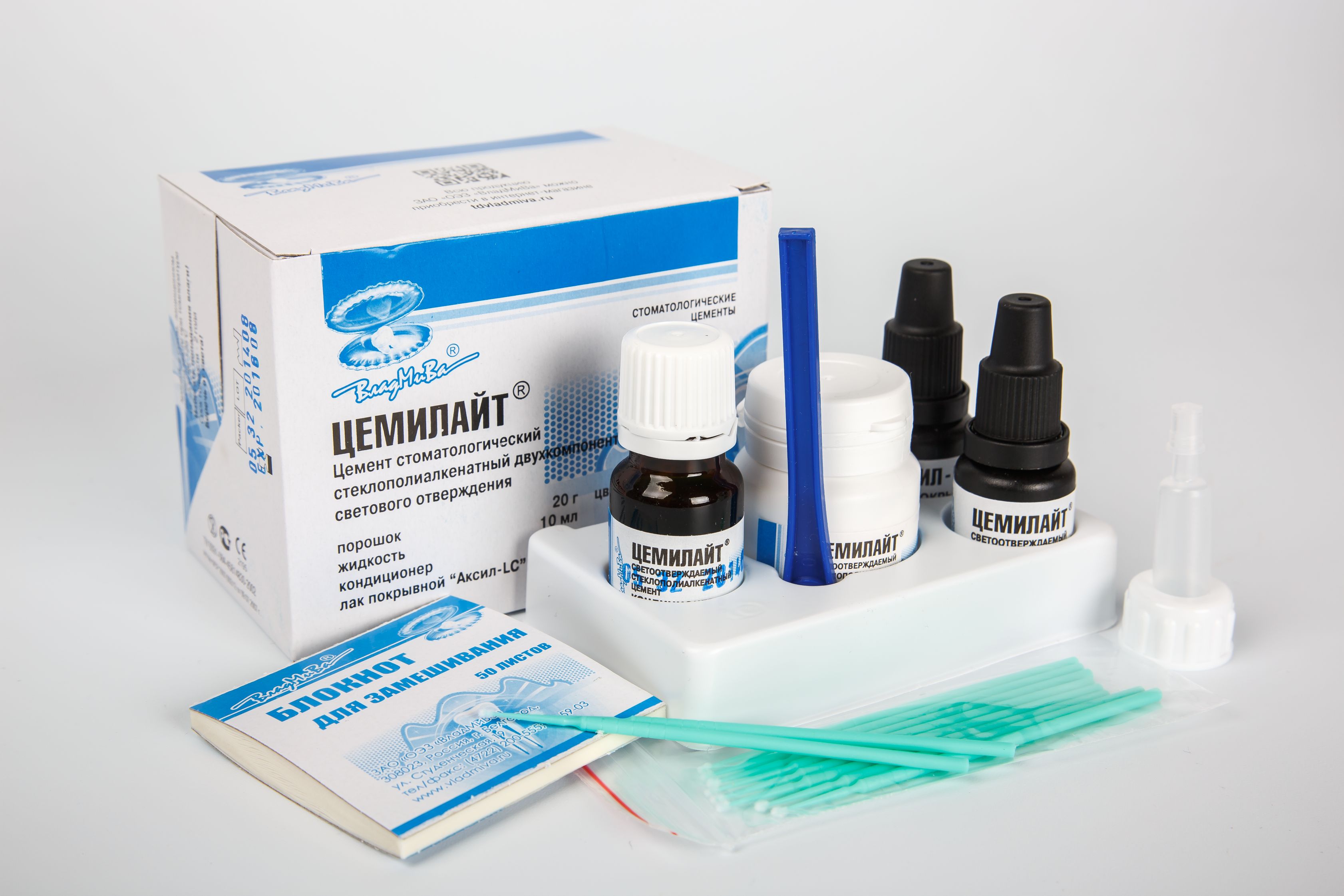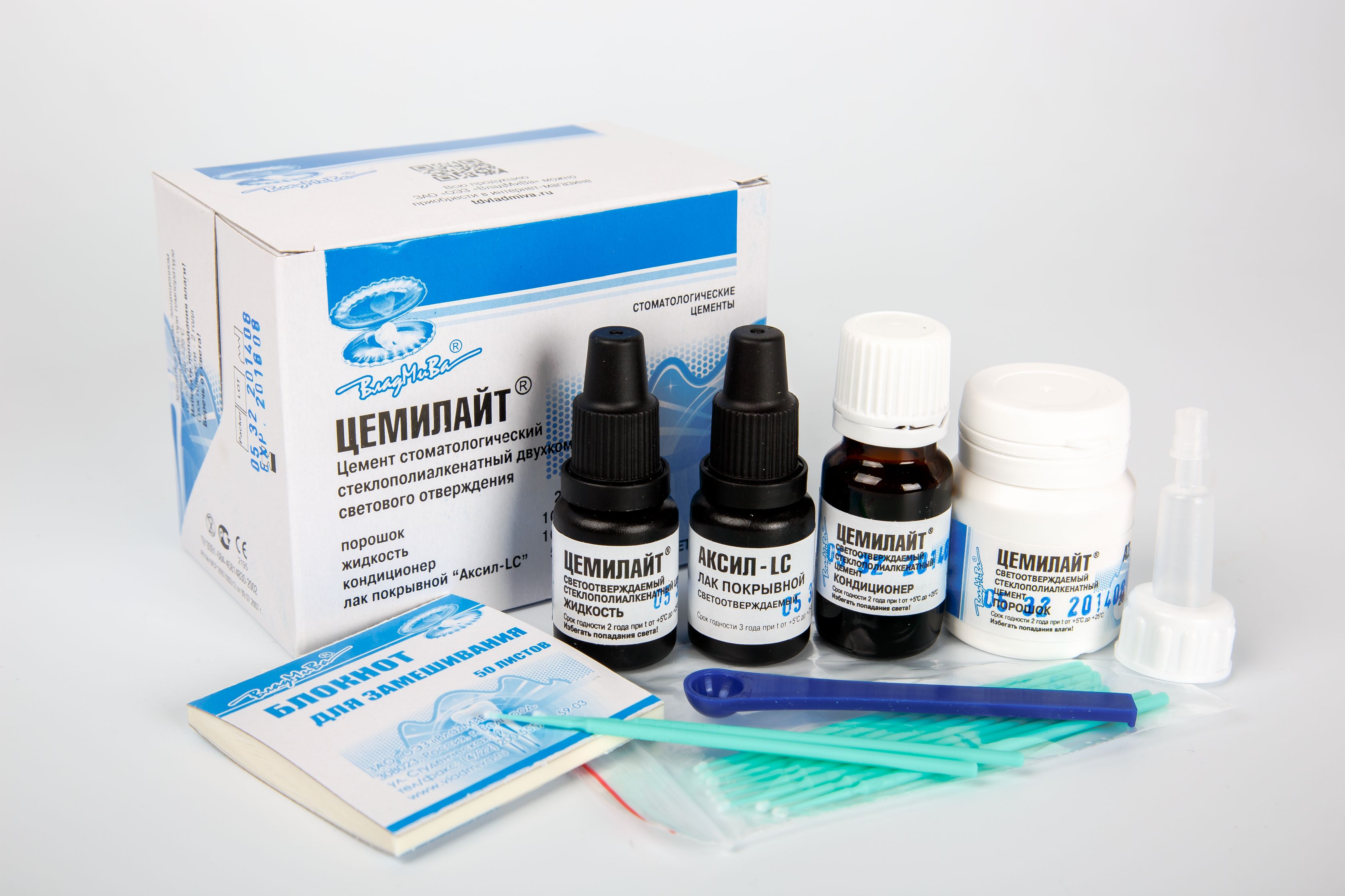 Стеклоиономерный светоотверждаемый цемент Цемилайт используется при лечении кариозных и некариозных заболеваний зуба, а также применяется как изоляционная подкладка под постоянными композитными или амальгамовыми пломбами.